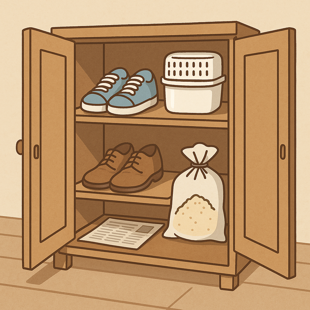 - 👞 신발장/👚 옷장: 굵은소금 그릇, 커피 찌꺼기, 신문지 활용해 탈취 및 제습. 문은 주기적으로 열어 환기