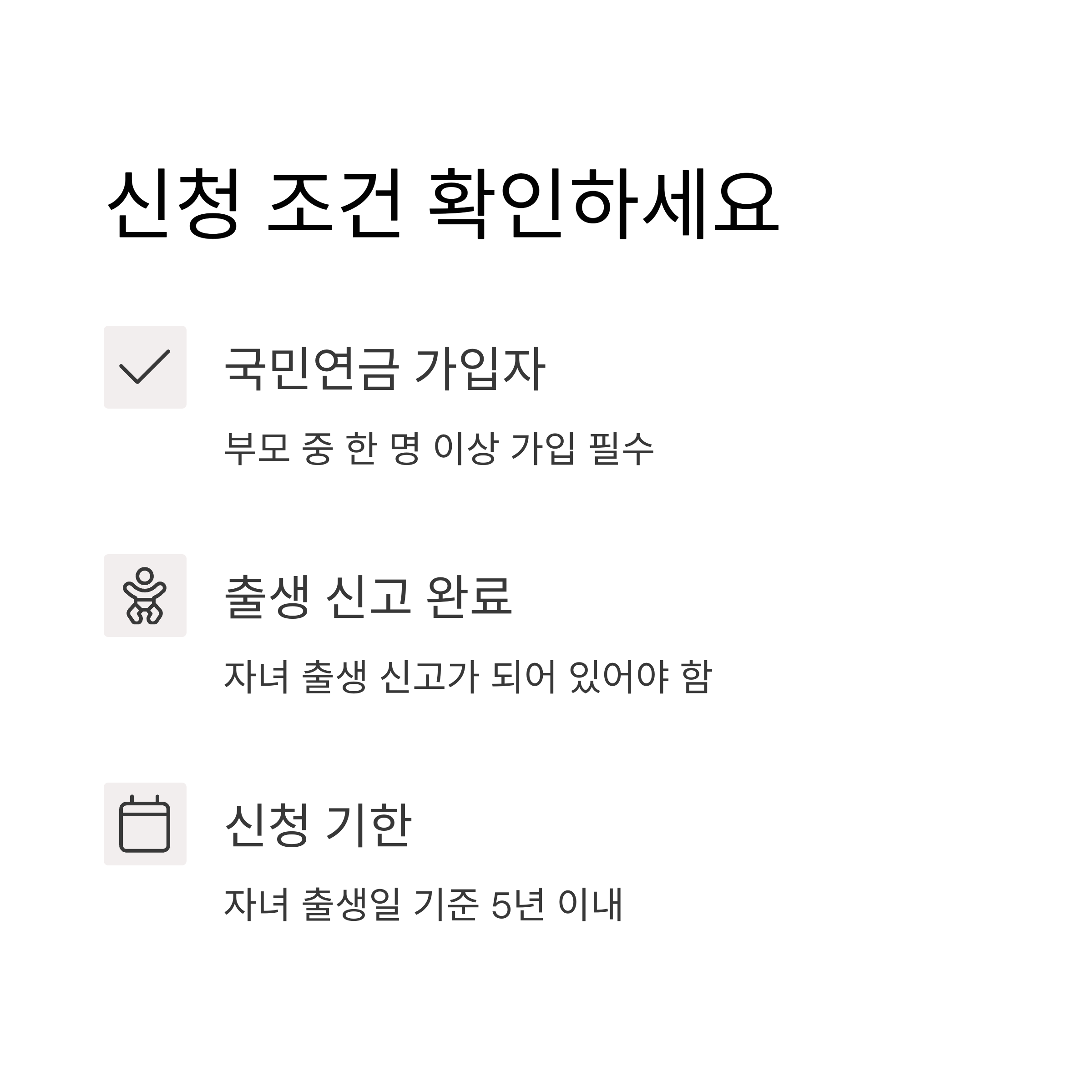 - 부모 중 한 명 이상이 국민연금에 가입되어 있어야 합니다.