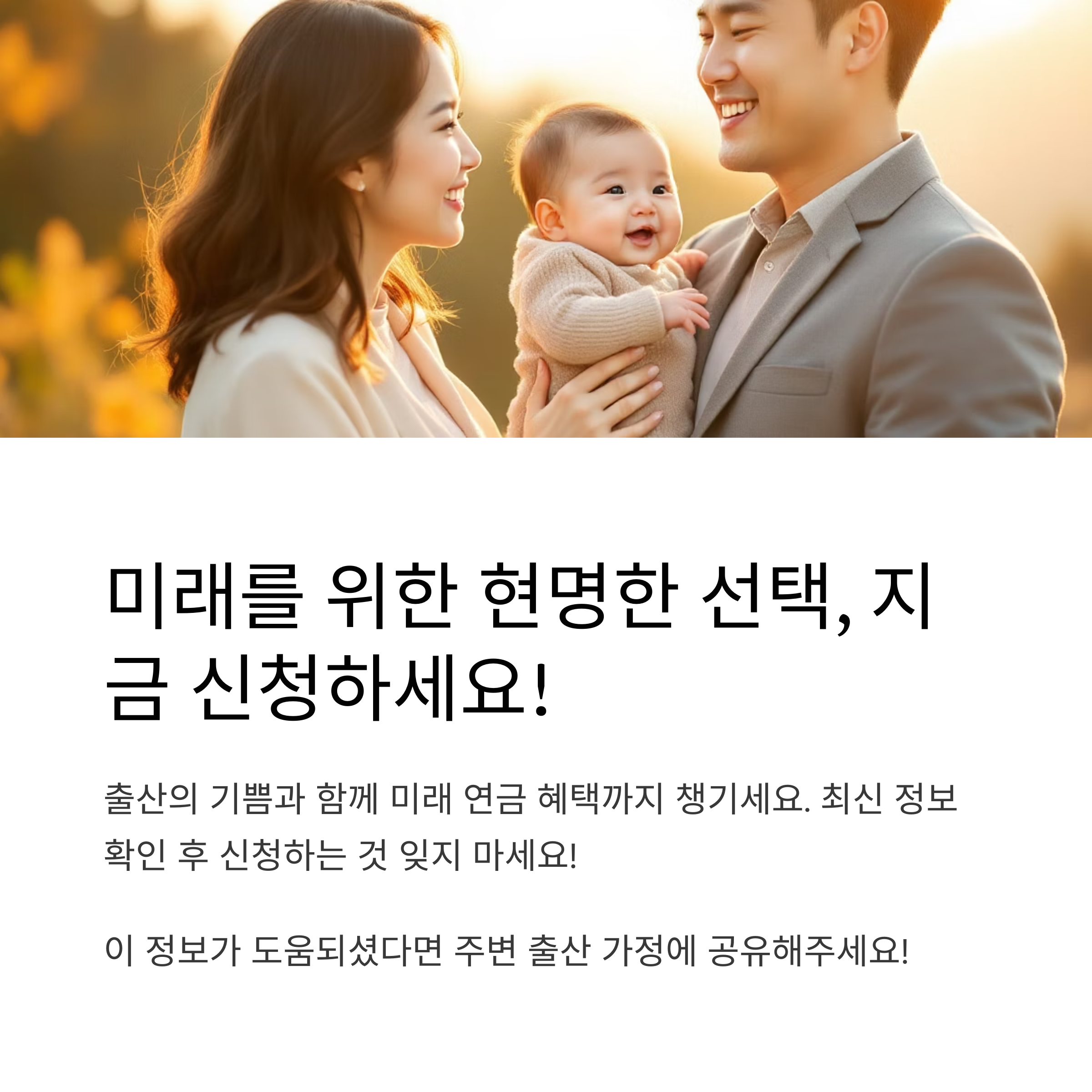 아이를 낳은 기쁨과 함께, 미래 연금 혜택까지 챙기세요!