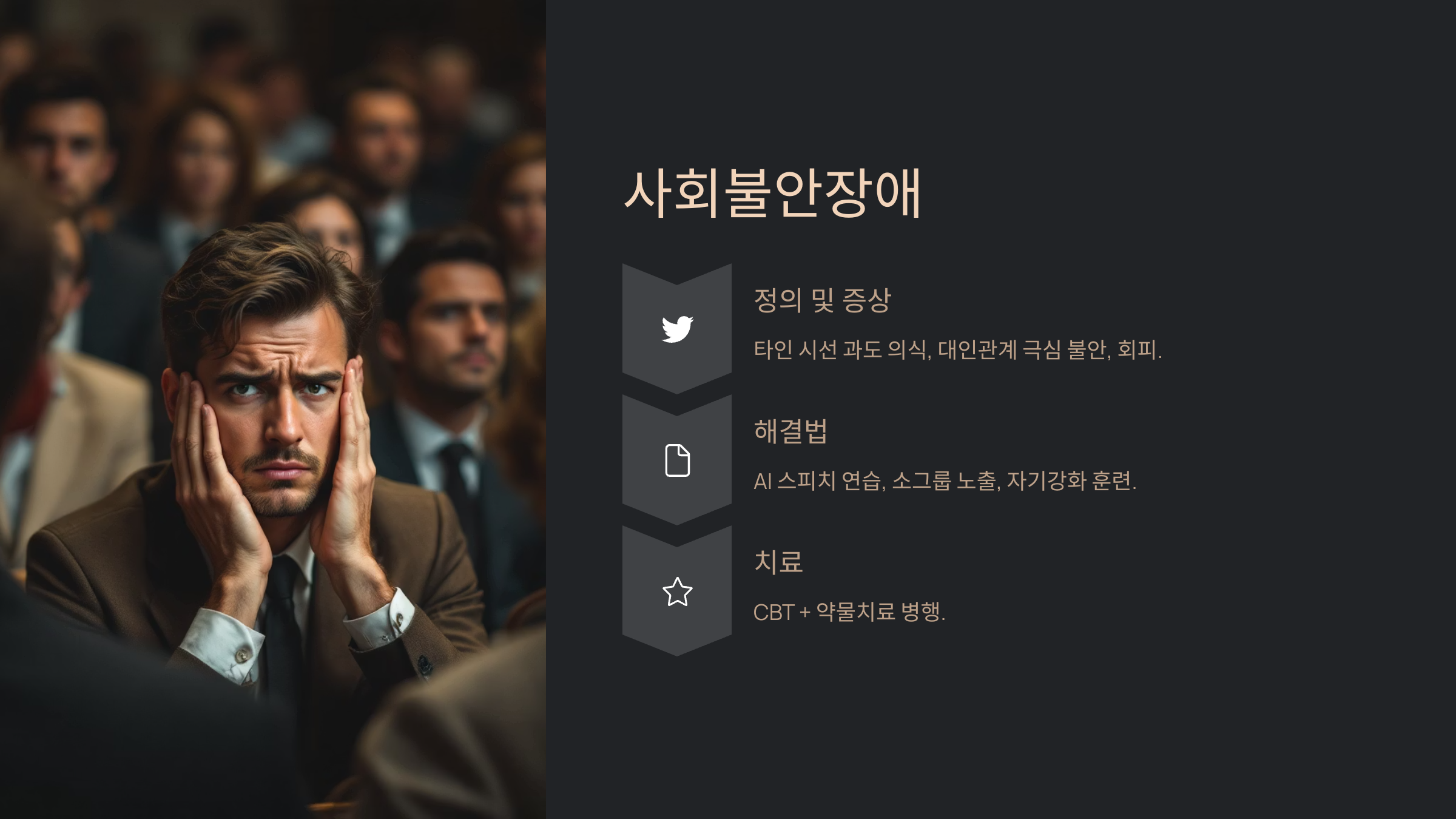 • 전문가 진단 후 SSRI+생활습관 개선 병행