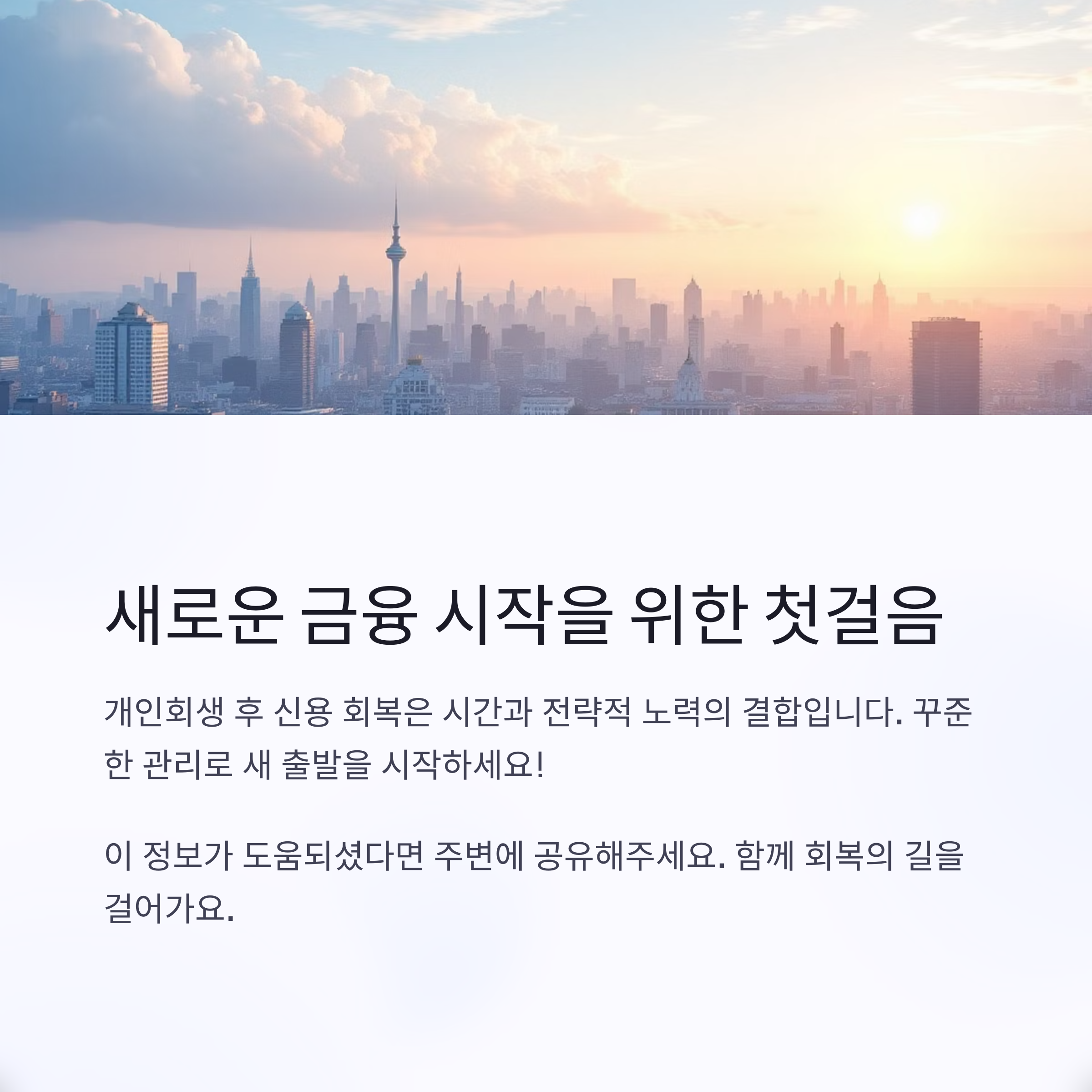 개인회생 이후 신용을 빠르게 회복하기 위해서는 단순히 기록 삭제를 기다리는 것만으로는 부족합니다. 신용 점수를 다시 끌어올리기 위한 적극적인 재정관리 전략이 필요합니다.