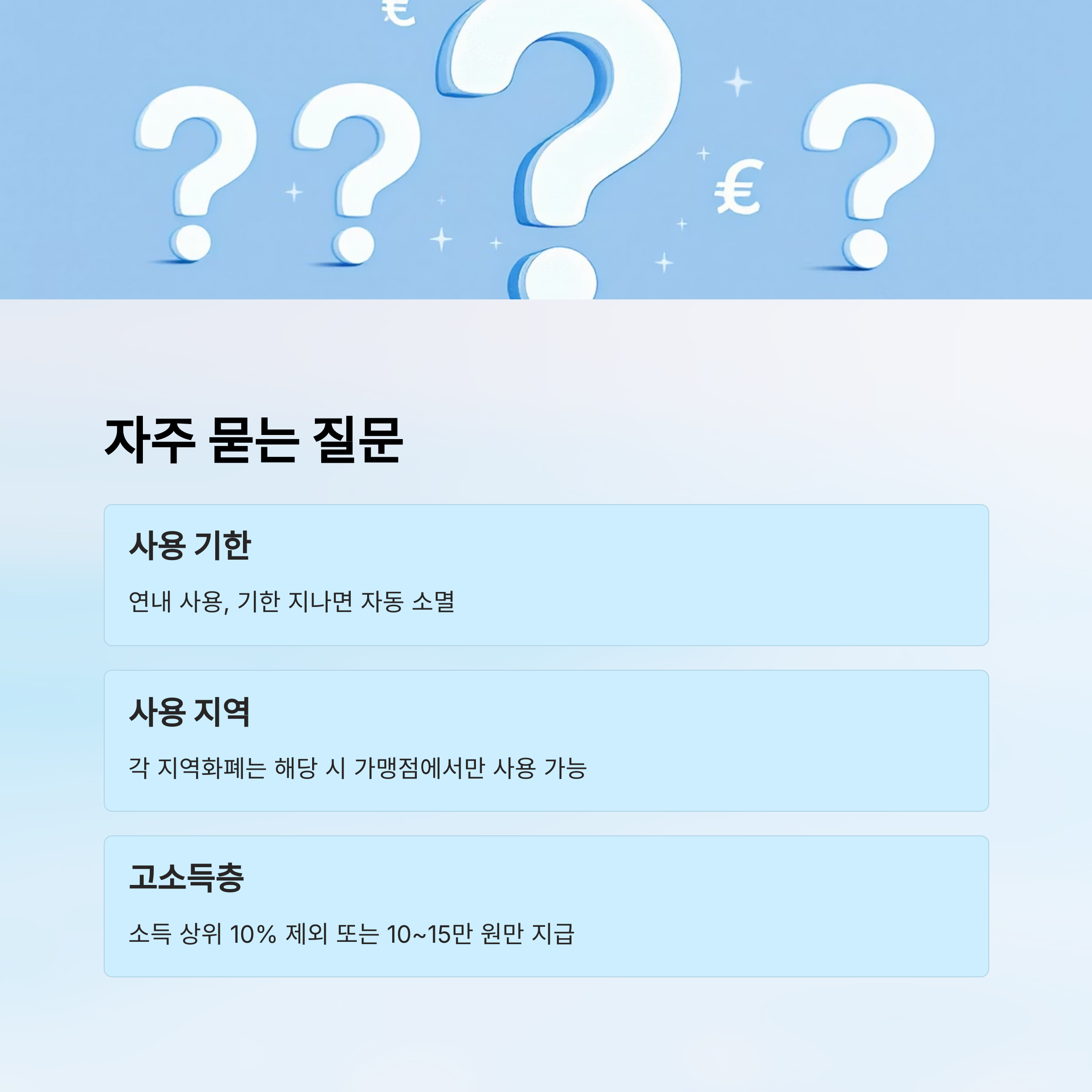 → 각 지역화폐는 해당 시 가맹점 내에서만 사용 가능합니다. - Q. 고소득층도 받을 수 있나요?