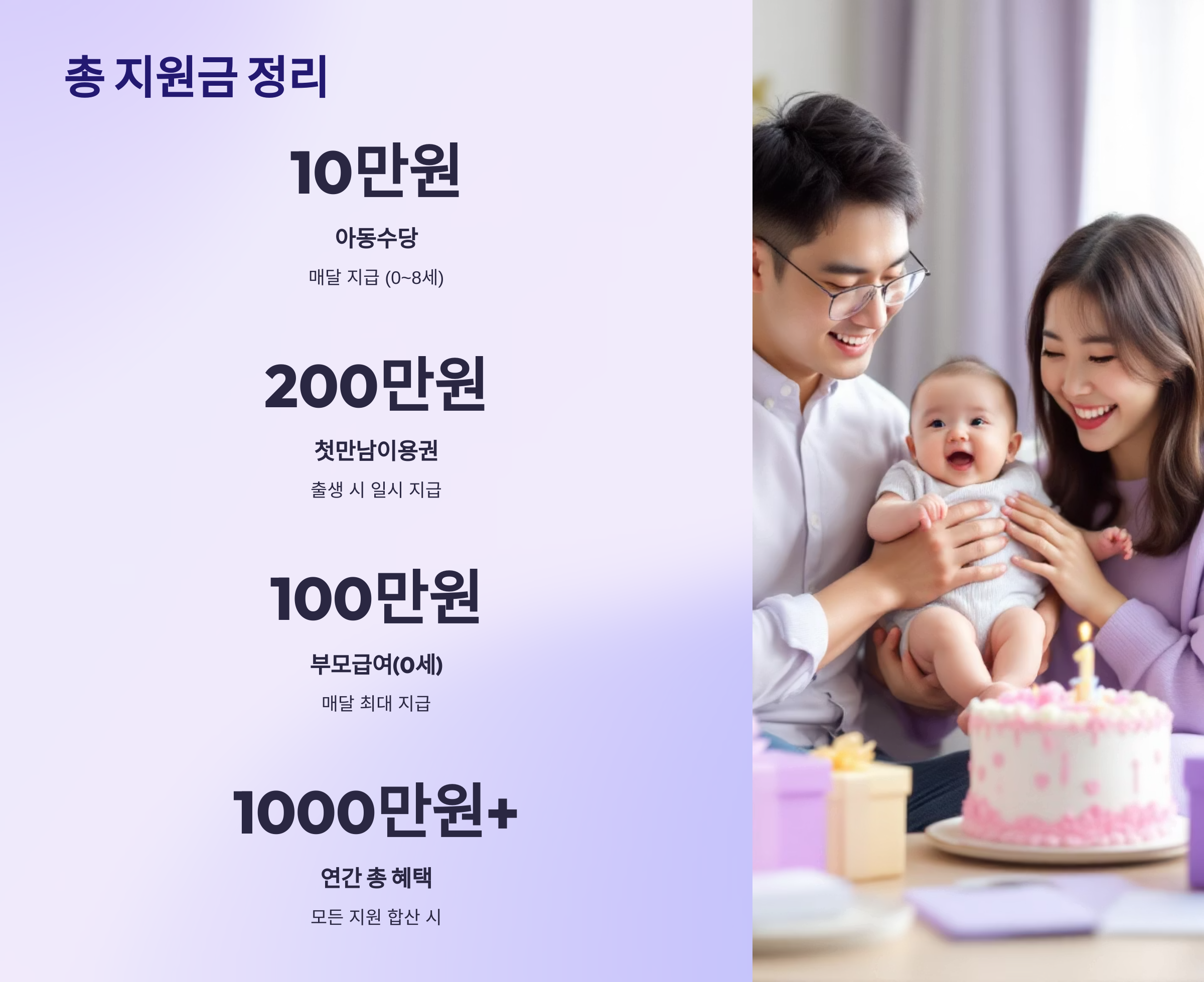 위 세 가지를 합산하면 연간 최대 1,000만 원 이상의 혜택을 받을 수 있습니다. 출산 전후로 꼭 신청해보세요!